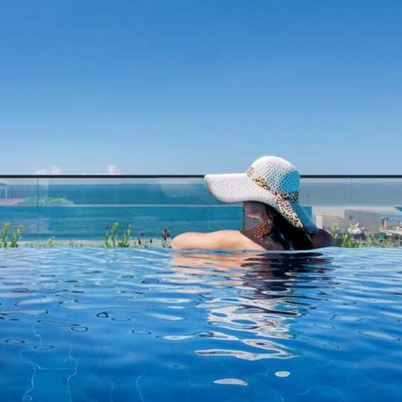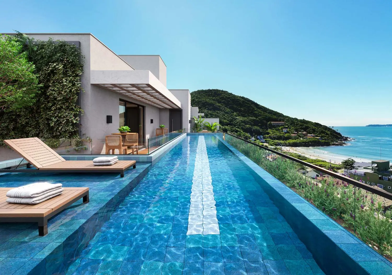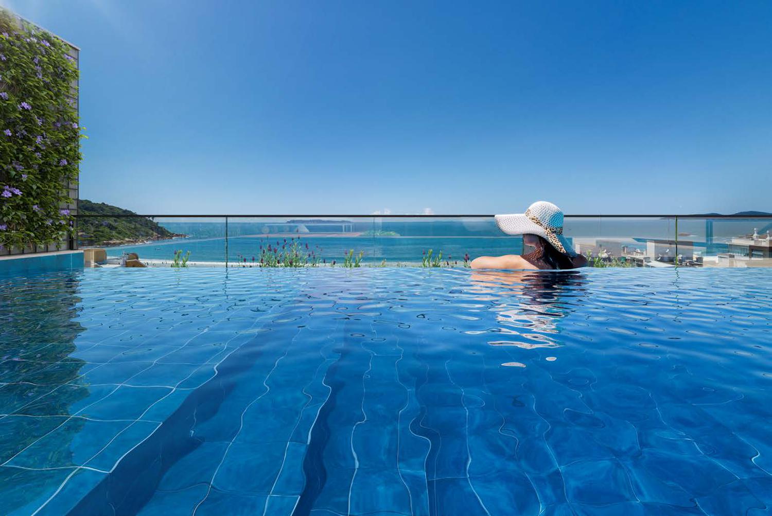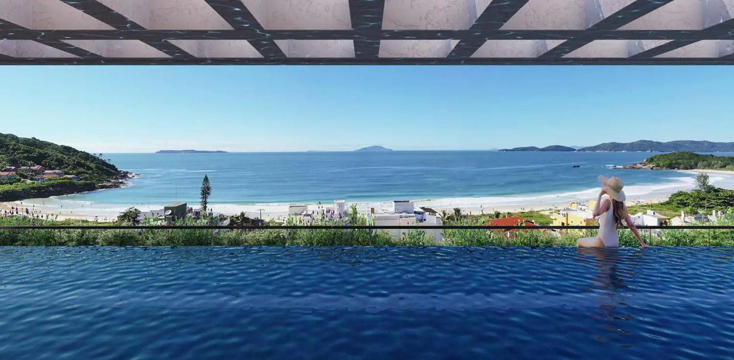 Piscina com borda infinita e vista para a praia de Quatro Ilhas